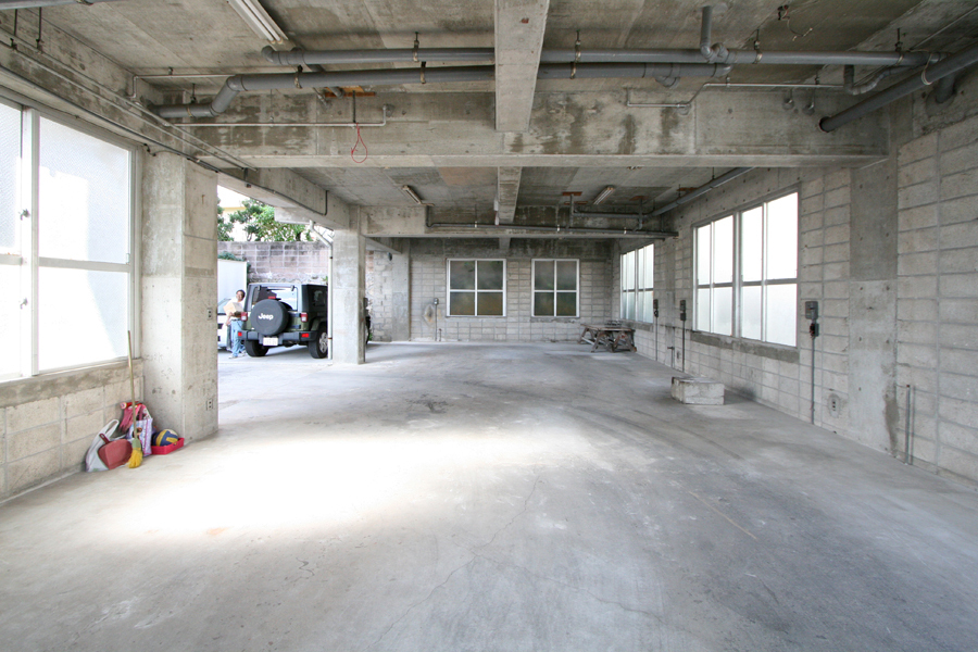 築32年の鉄筋コンクリート造2階建ての建物。父親が所有する工場兼賃貸住宅を姉妹で譲り受け2世帯住宅へ。こちらは、1階部の工場跡を大空間の住居へリノベーションしたお住いです。