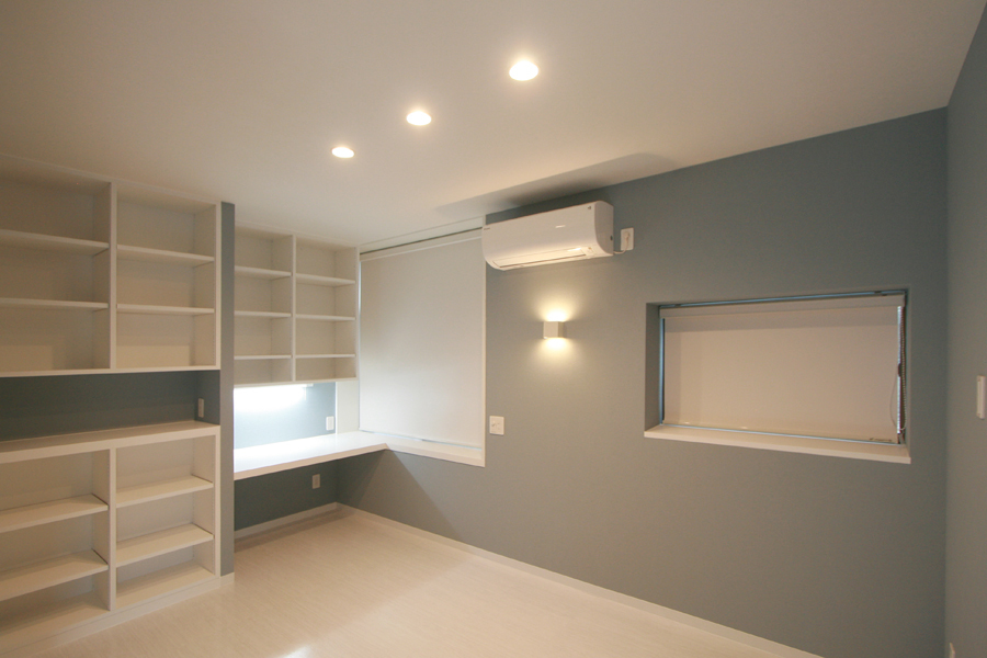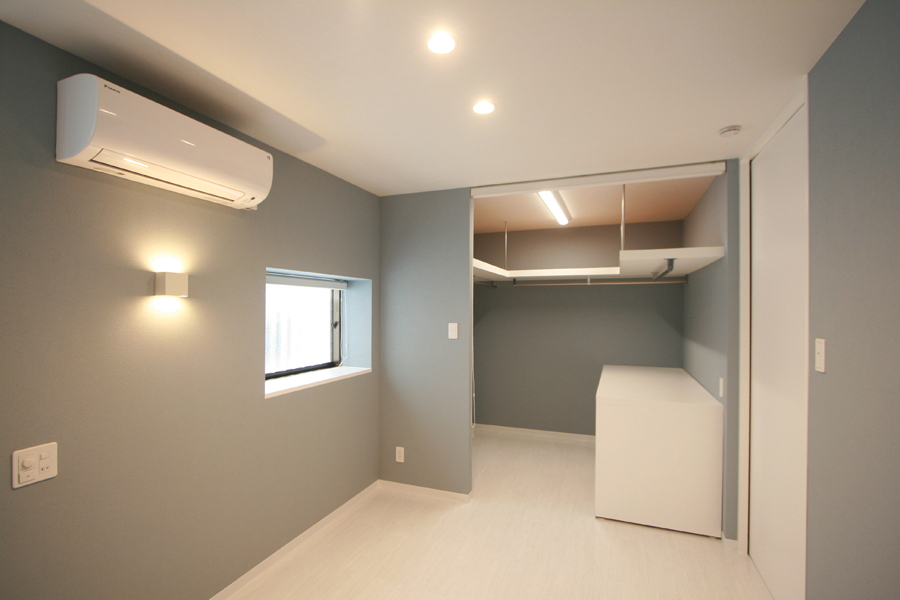LDKは、壁を一部撤去し開口を拡げデッキテラスを新設。天井も取り除き高さを確保することで、より開放的で広がりのある空間へ。リビング横に設置した子ども室は、オープンスペースとしながらも、子供の成長を見据えて、間仕切り戸にて2室へと変更可能とした。また生活シーンに合わせてリビングからもプライベートを確保できるようにしています。寝室は、デスクワークが出来るスペースと、ウォークインクロゼットに作業台を設けるなど、作業がスムーズに行われるようにしています。